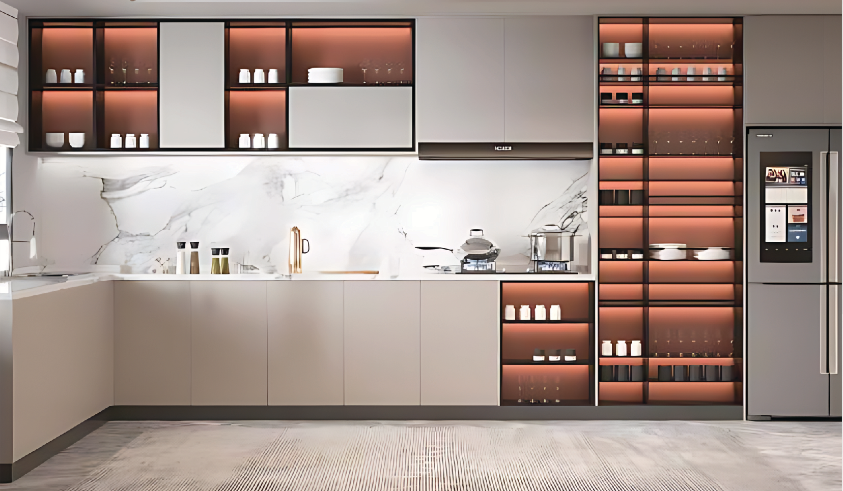 → Không. Bề mặt nhôm được xử lý sơn tĩnh điện và phủ film bảo vệ, đảm bảo độ sáng bóng lâu dài ngay cả trong môi trường ẩm. - Có thể lắp phụ kiện hiện đại cho tủ bếp nhôm không?